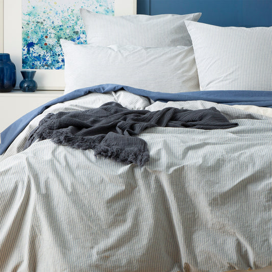 Vintage Washed Cotton Sheet Set - Yarn Dyed - Ticking Stripe